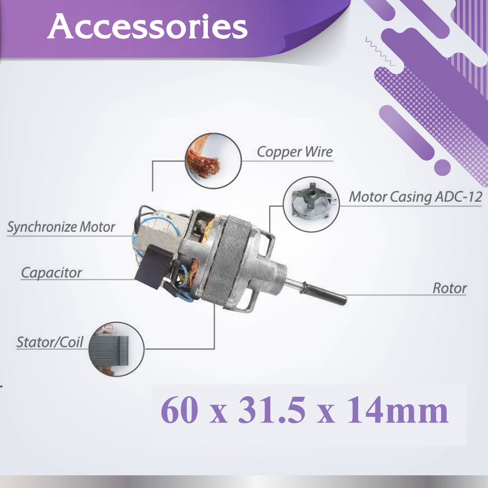 | Rotary Switch | 3-speed Rotary switch control on motor cover | Motor: | 60x31.5x14mm Mix Copper |