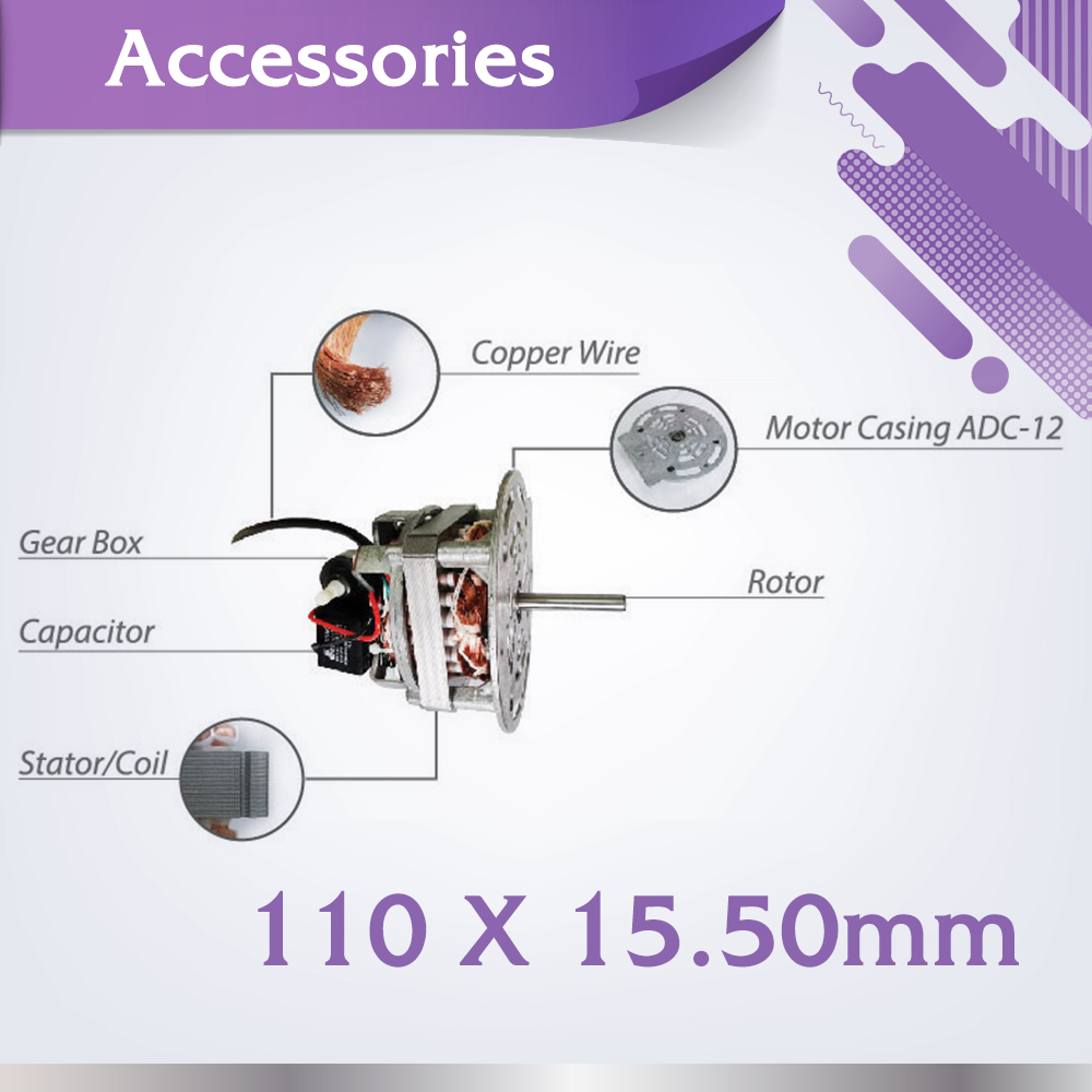| Rotary Switch | 3-speed Rotary switch control attached to metal wall mount | Motor: | 110 x 65 x 15.50mm Copper |